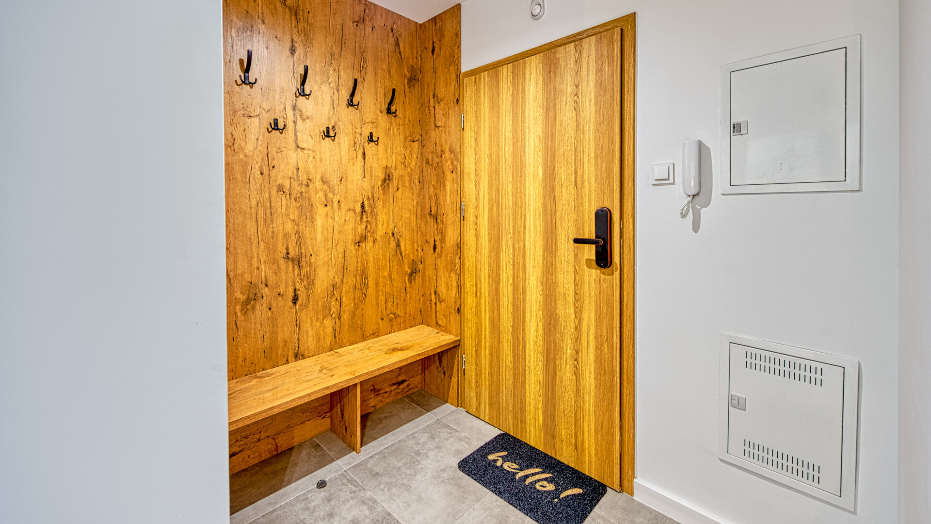 Przytulny apartament z balkonem, inspirowany naturą. Do dyspozycji gości bezpłatna sauna i pokój zabaw dla dzieci.
