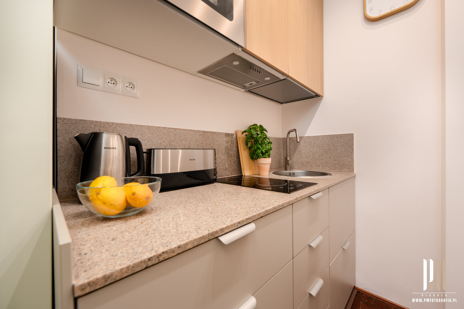 Dla Gości preferujących samodzielne przygotowywanie posiłków stworzono w pełni wyposażony aneks kuchenny, w którym znajduje się: