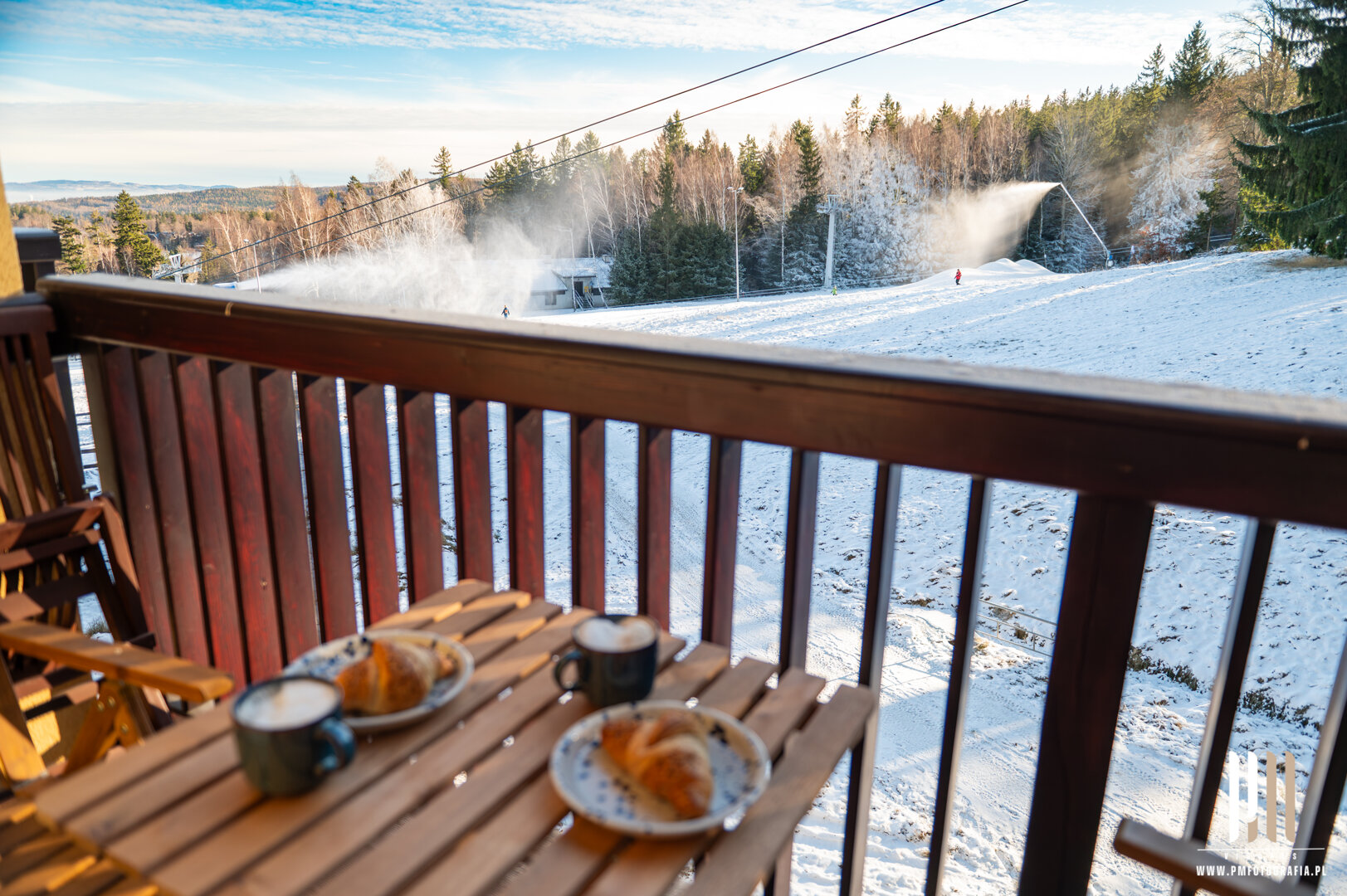 Z balkonu roztacza się malowniczy widok na stok, dzięki czemu każdy poranek i wieczór nabiera wyjątkowego charakteru. To idealne miejsce na poranną filiżankę kawy, wieczorną lampkę wina lub chwilę wytchnienia na świeżym, górskim powietrzu.