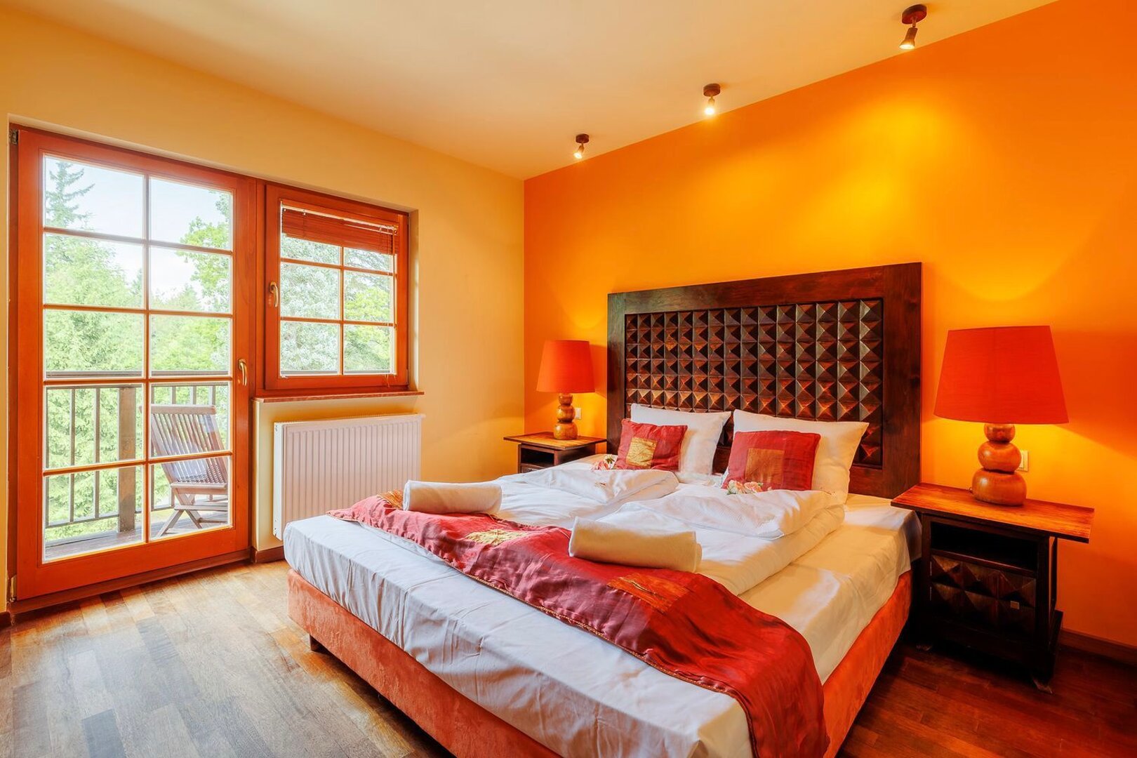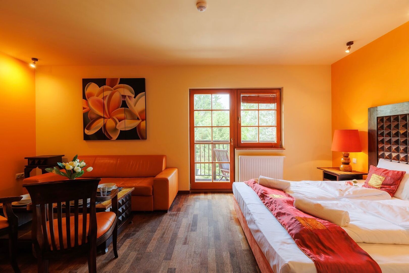 Przytulny apartament z balkonem, inspirowany naturą. Do dyspozycji gości bezpłatna sauna i pokój zabaw dla dzieci.